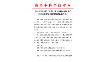 2023年12月19日,东锐获得了2023年第二批南昌市工程技术研究中心和重点实验室组建名单公示...