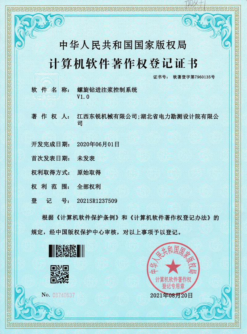 螺旋钻进注浆控制系统软著证书