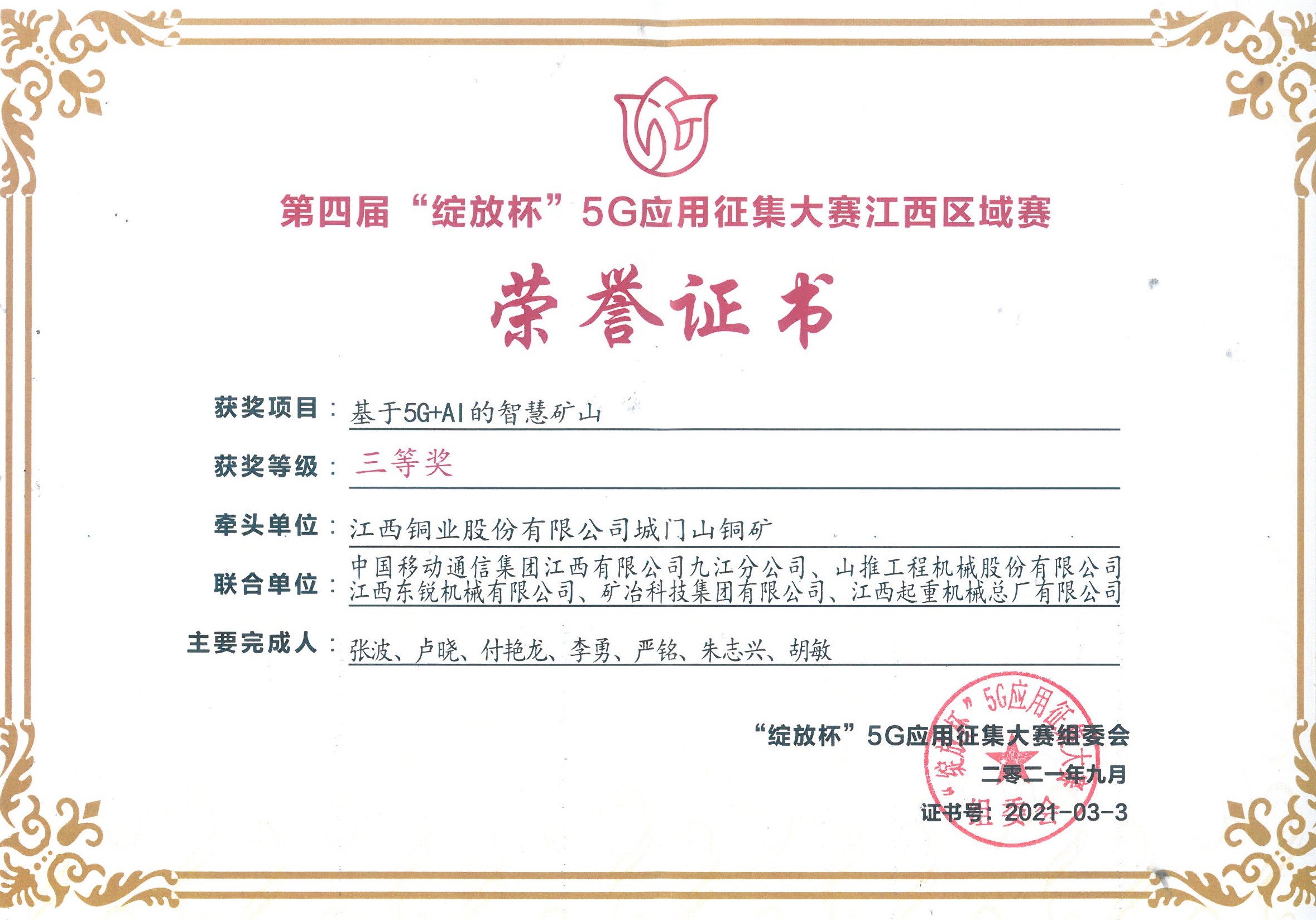 第四届“绽放杯”5G应用征集大赛荣誉证书